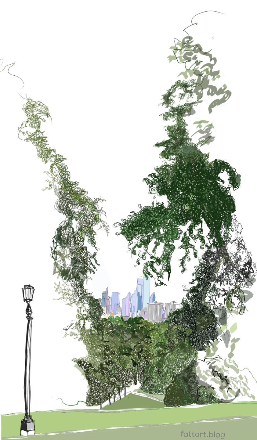 Walking home last week I cheated a bit and took a path that doesn’t quite go to the summit of Primrose Hill. From this path I saw just a slice of the panoramic view on offer at the top, the city, beautifully framed, it made my day.