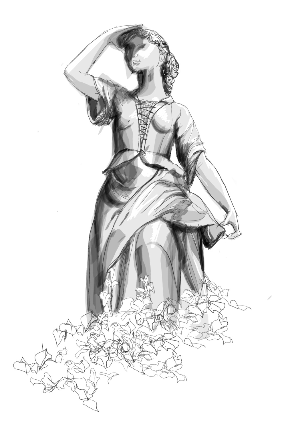 On our walk home from the park yesterday morning, I stopped to take a picture, again, I’ve got masses of them, of the statue I always think of as Bo Peep. She stands above a grotto on the edge of the park, looking out for something. I knew I had read somewhere that this was not a statue of the girl who’d lost her sheep.