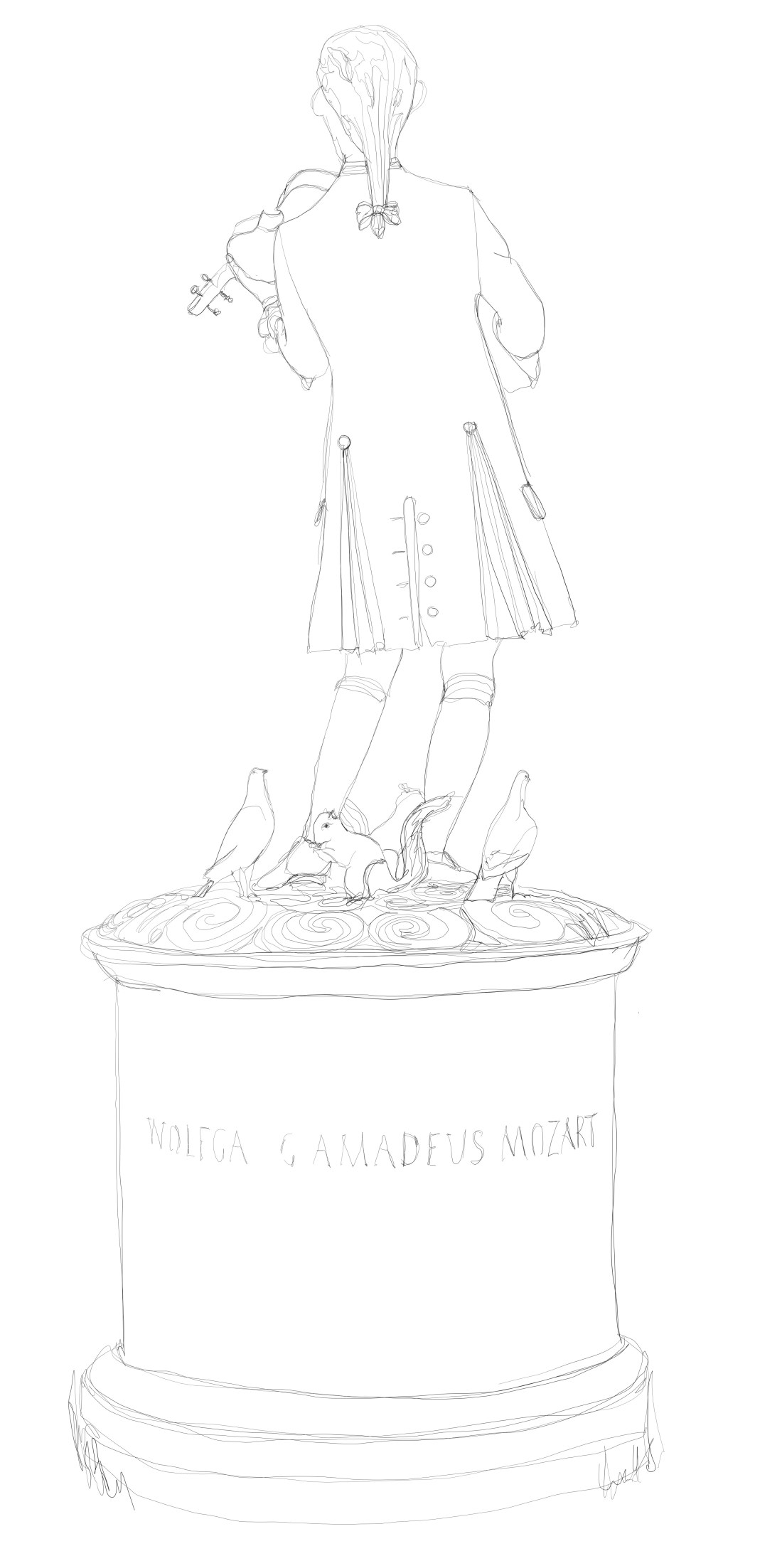 I rediscovered a pet cemetery that had fascinated me when I was small, Gentle, loving, little Bijou 1895, Dear little Fritz 1906. There’s the sweetest statue of a young Mozart wearing a frock coat with his hair in a ponytail.