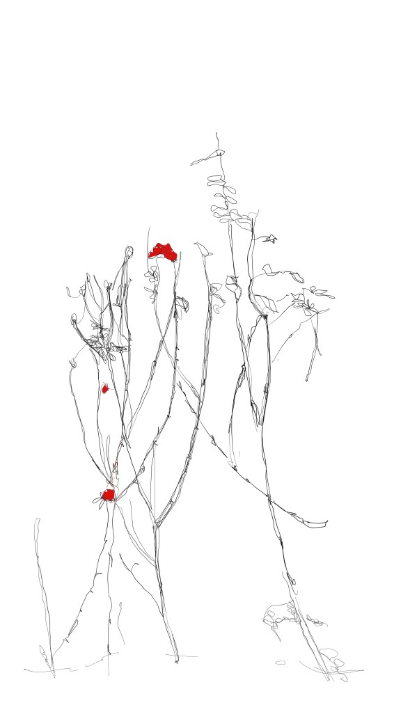 There are rose bushes in a local park that are much more up for winter working than me. Un pruned they are still flowering. Deep red amongst brown twigs.