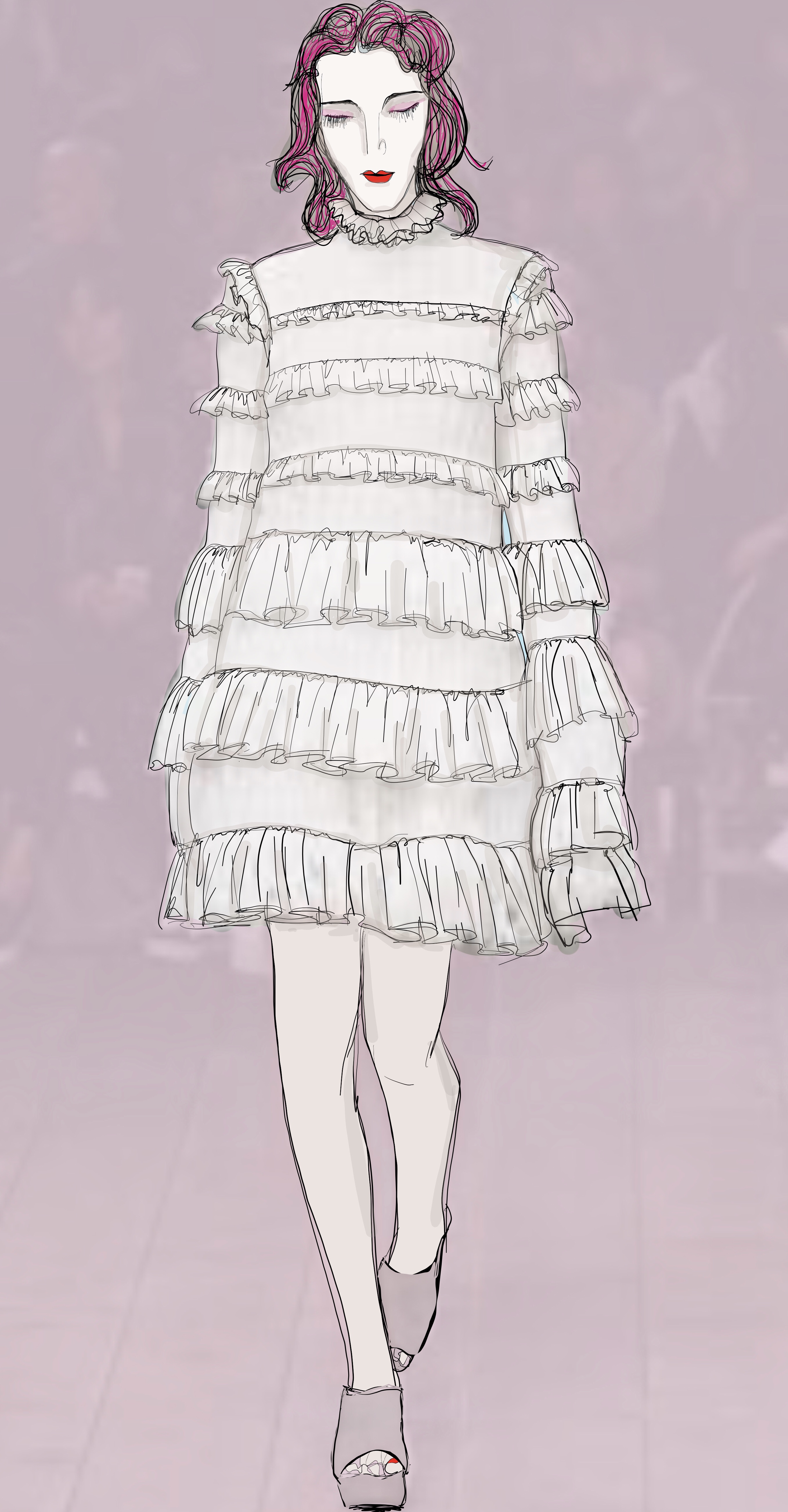 She arrived at the studio this morning to find a bra and an empty Prosecco bottle on the gold table. My bad, not as exciting or naughty as it looked. In the distance a superbly groomed, very tanned, short, camp man could be heard calling, Sienna, have you found the frills?