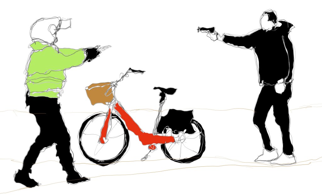 It turned out that it was a replica gun and the policeman was not your regular plod but part of a parliamentary protection team. Whatever that is. In addition to the replica gun pointing criminal, and the taser toting policeman, the video included a push bike. I’m totally behind the idea that gun violence shouldn’t be glamourised, but I found the homeliness suggested by a bicycle, during a dull London morning rush hour much less dramatic than I would have imagined a gun/taser stand off to be. Perhaps, in part because I would have said that pulling guns, real or replica, on policemen was a nighttime activity, not a pre breakfast one.